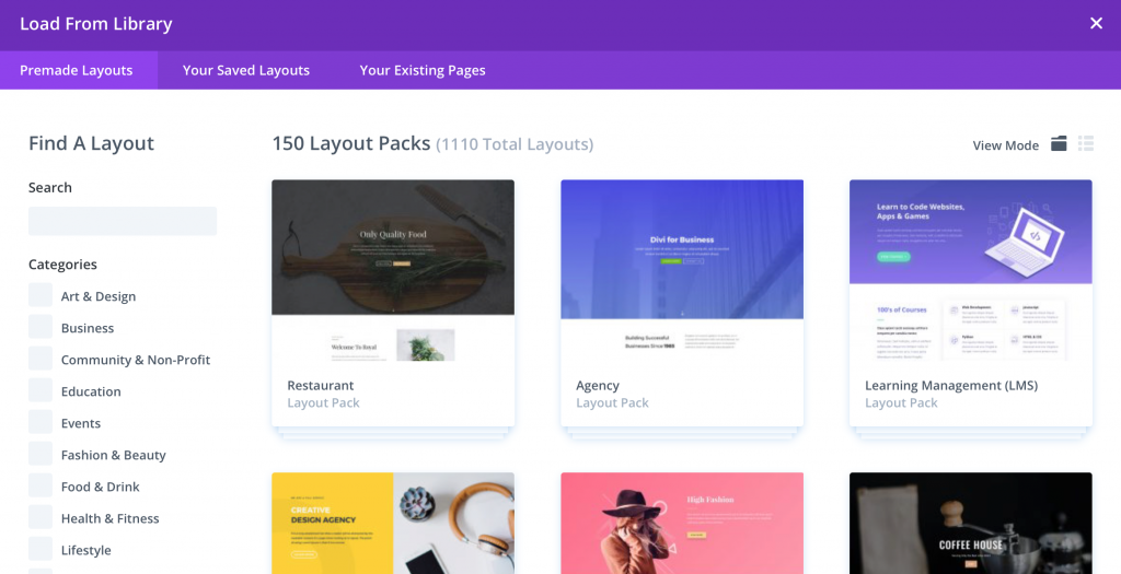 The theme offers 150 layout packs and more than 1000 pre-made site layouts for you to choose from, which fresh layouts being added every week. We love that Elegant Themes categorizes these layouts to help site owners find what they need fast.